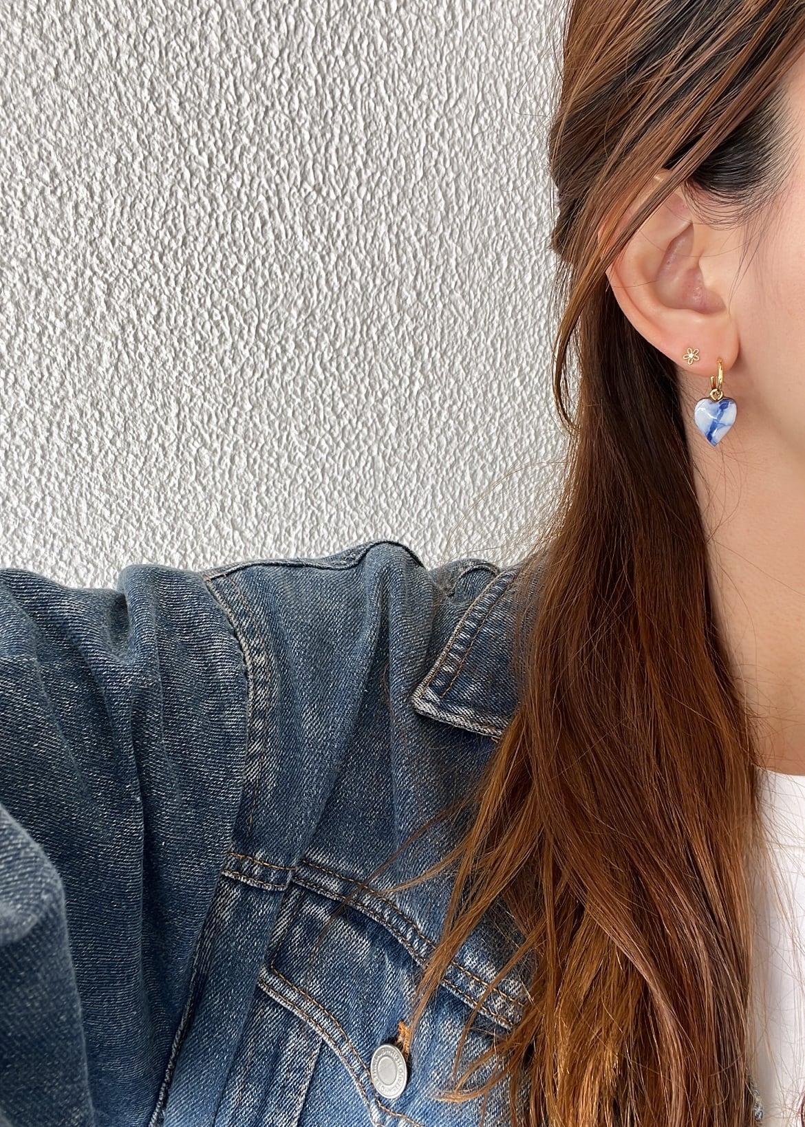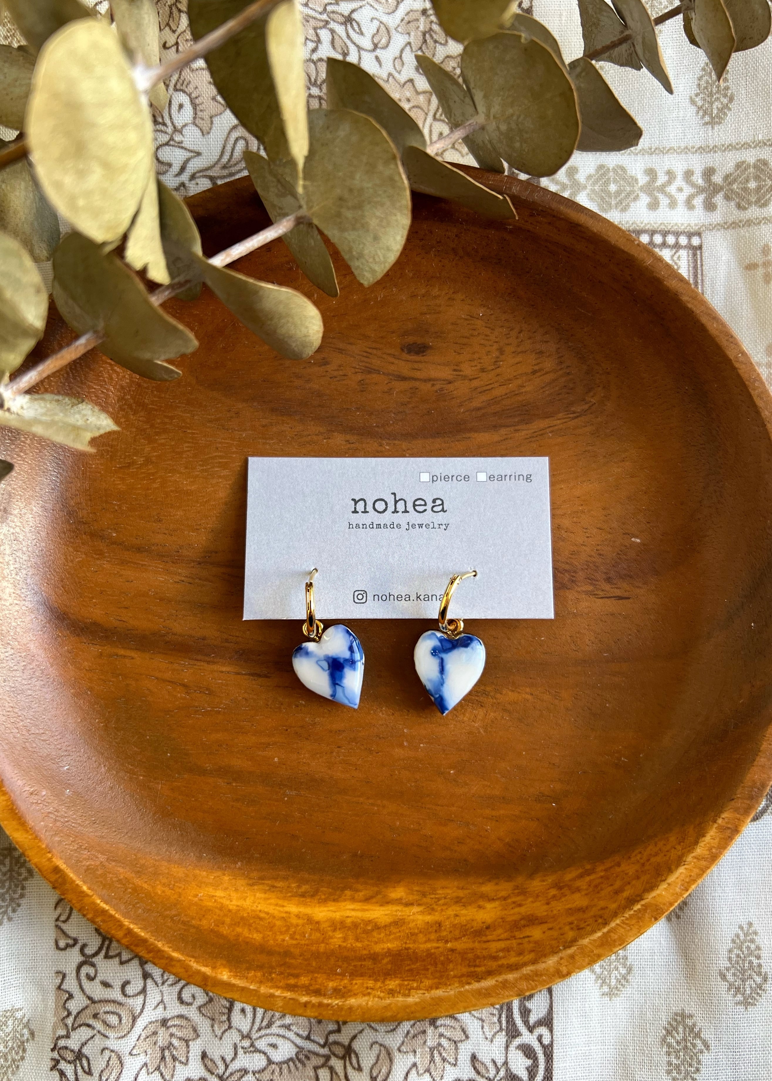 〖春コーデに〗 Update! Reversible Heart Marble♡ゴールドカラー金具 インディゴブルー