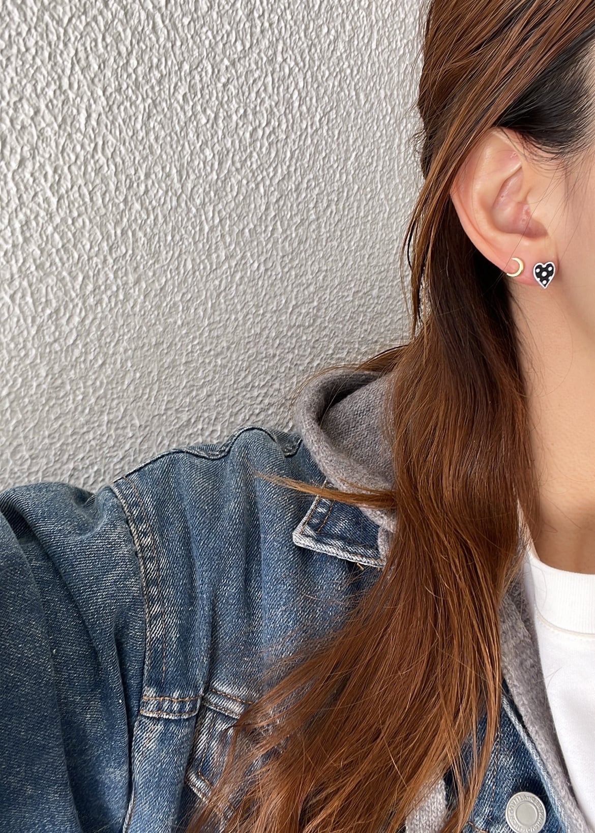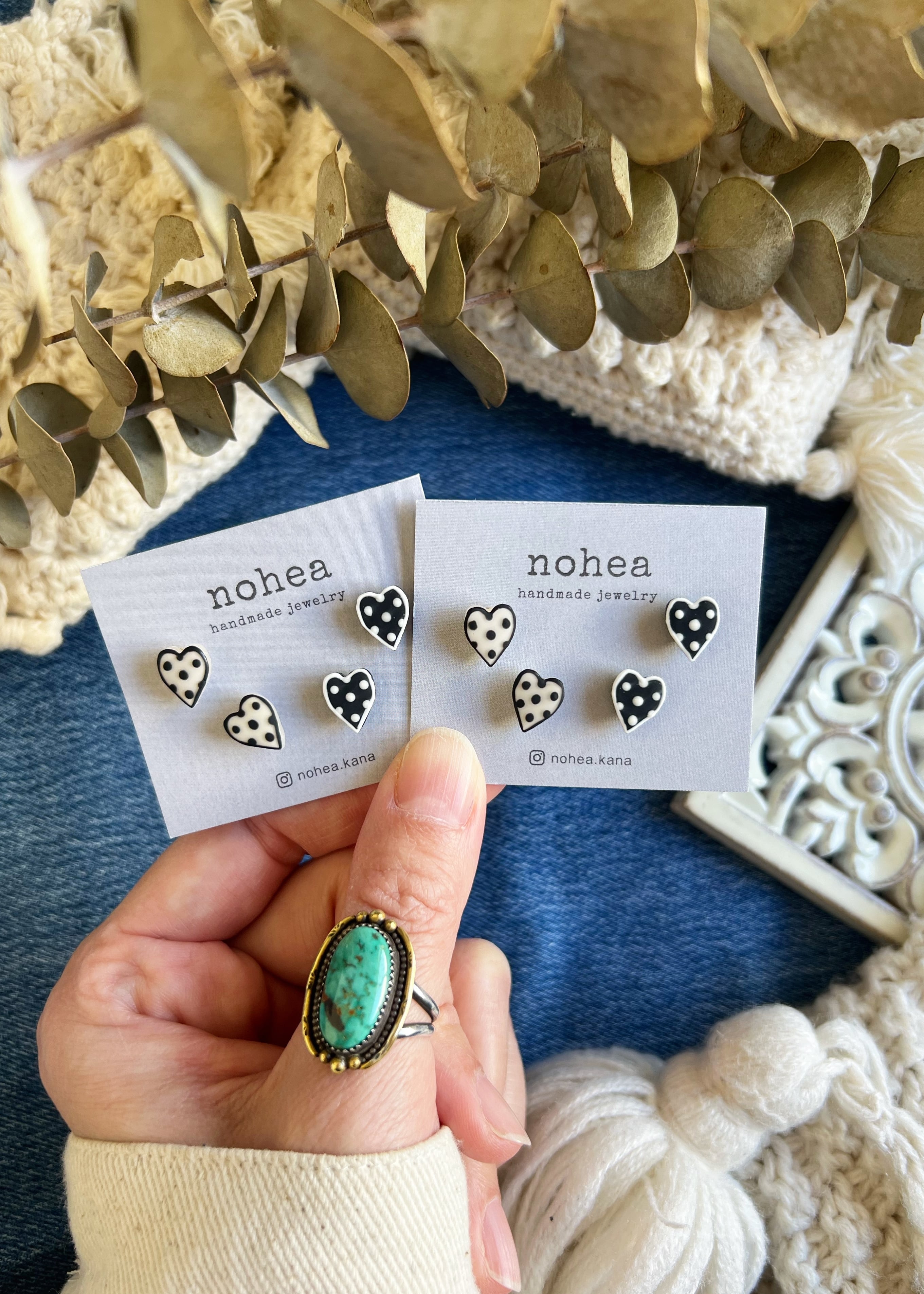 オリジナルミニのハートにアートを加えて2種類のドット柄のハートピアスを作りました♡