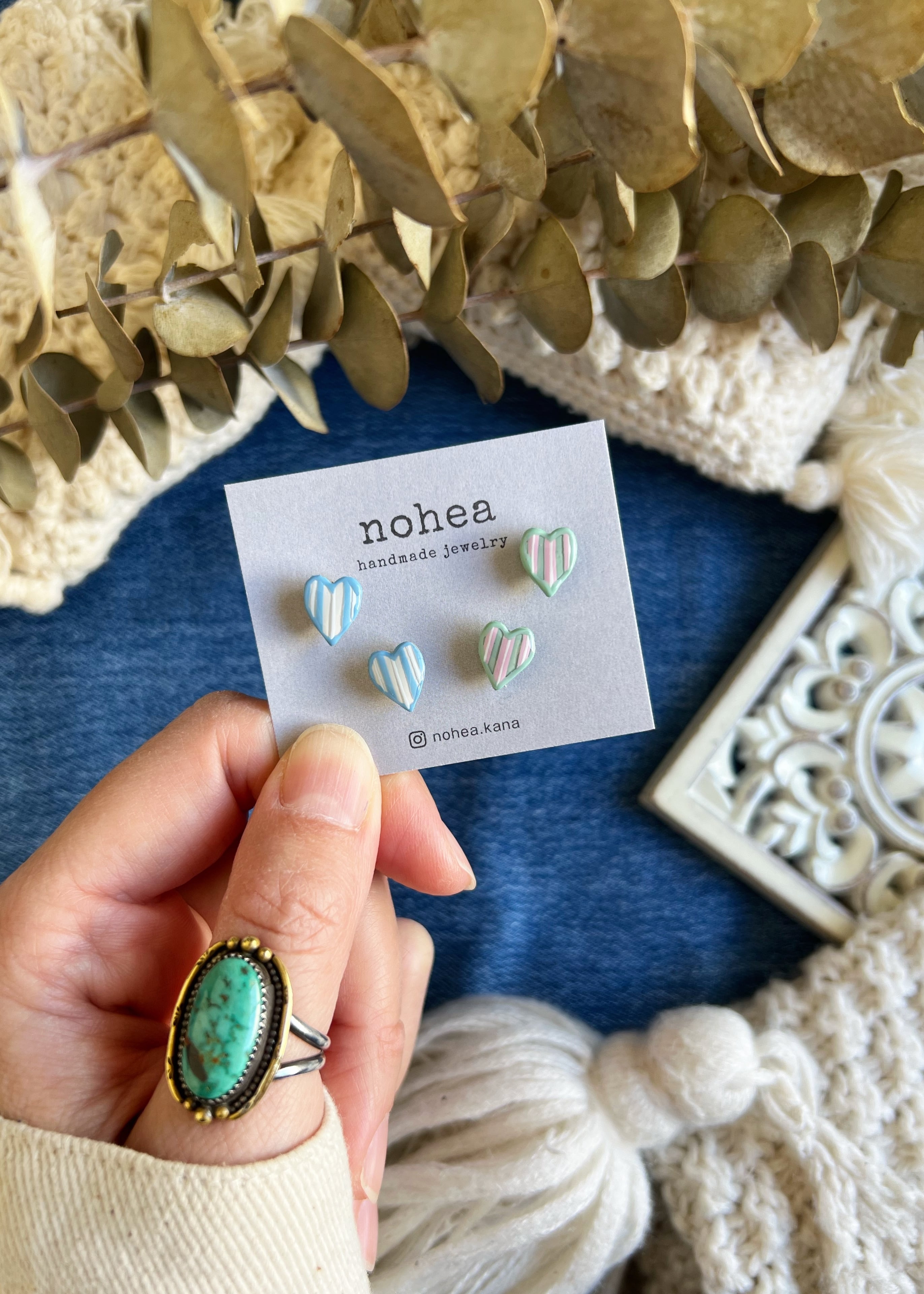 オリジナルミニのハートにアートを加えて2種類のストライプ柄のハートピアスを作りました♡