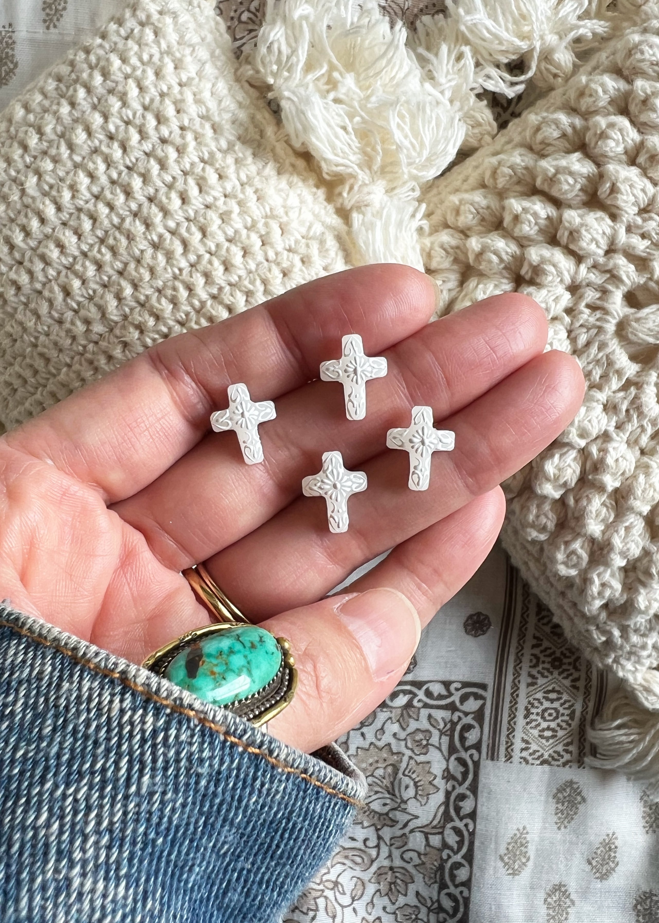 こちらはサンプルでお作りしたマットホワイトベースにぷっくりホワイトラインのオリジナルデザインのクロスピアスです!