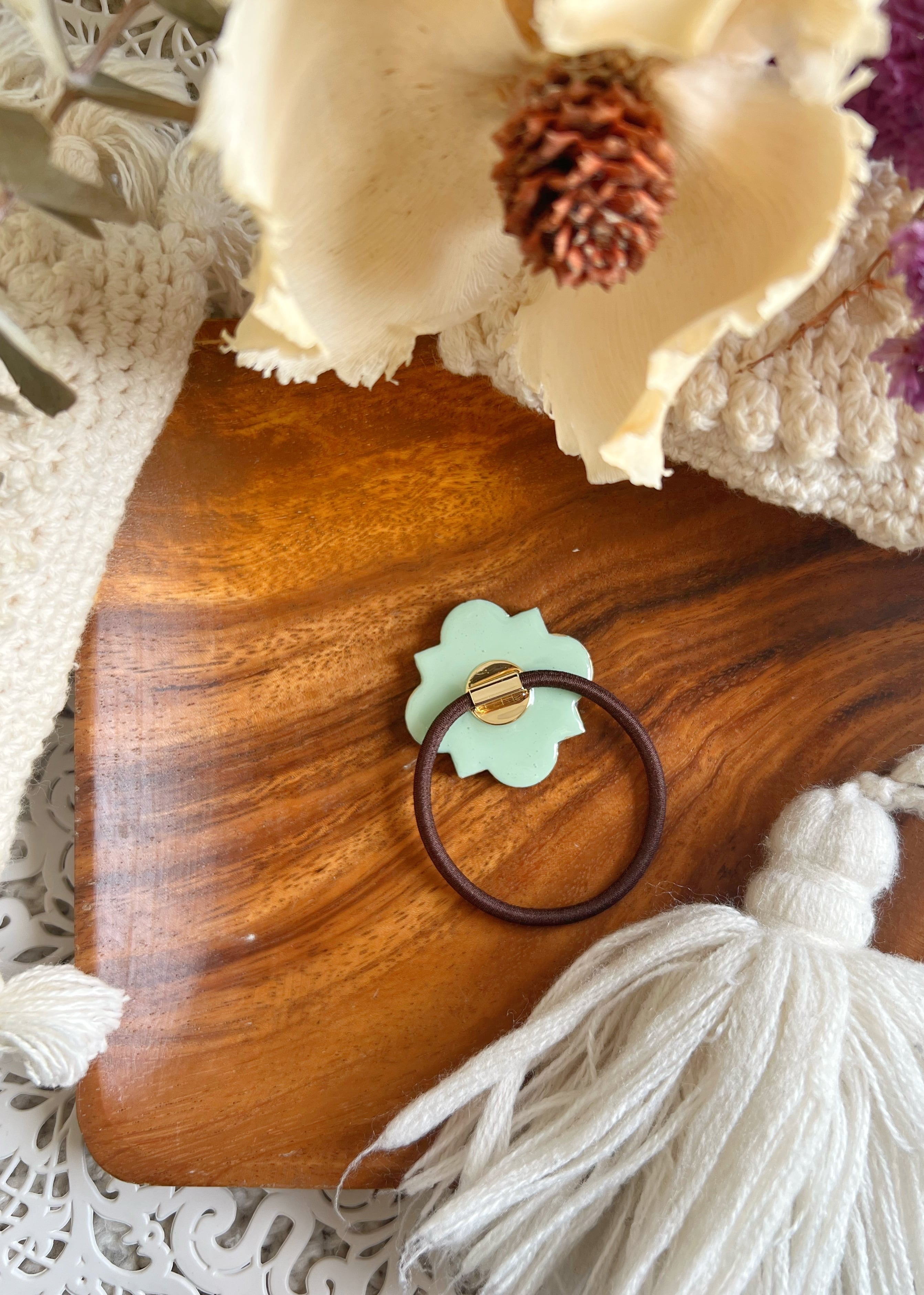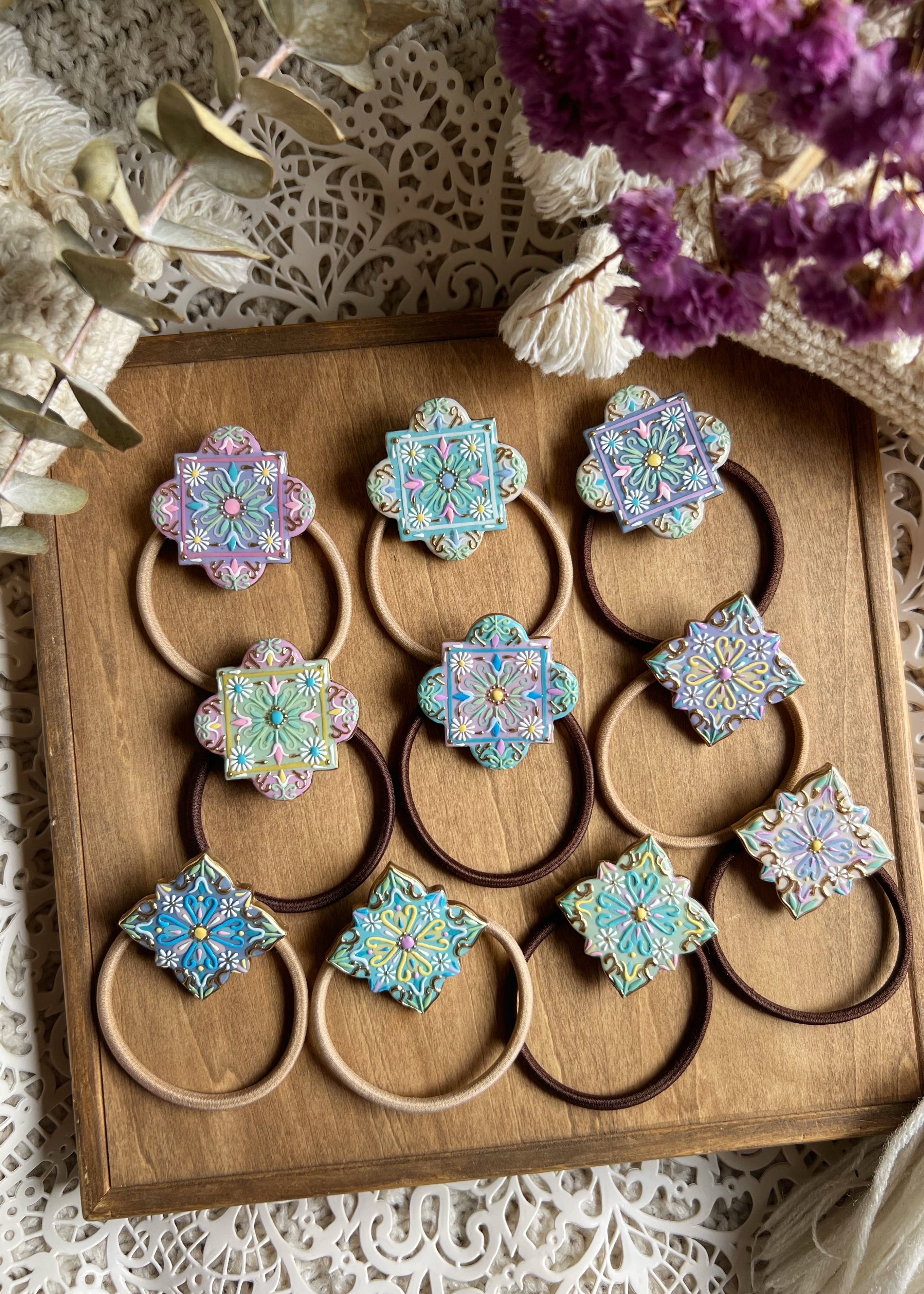 手描きのぷっくりボタニカルタイルヘアゴム④