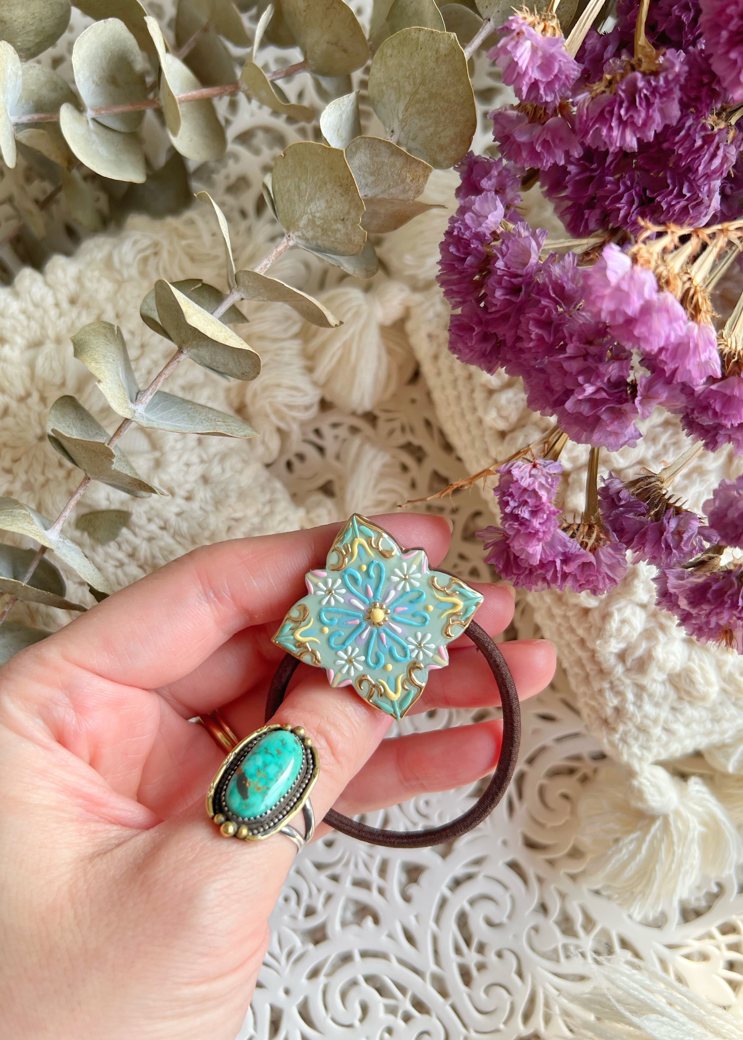 手描きのぷっくりボタニカルタイルヘアゴム⑨